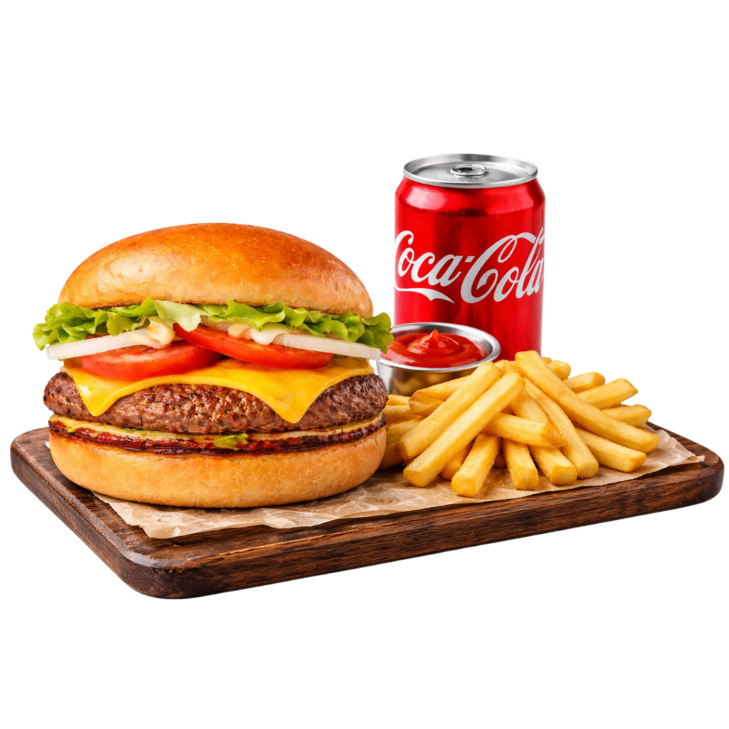 1 lanche X-Burguer, 1 porção de fritas pequena e 1 refrigerante ou suco lata
